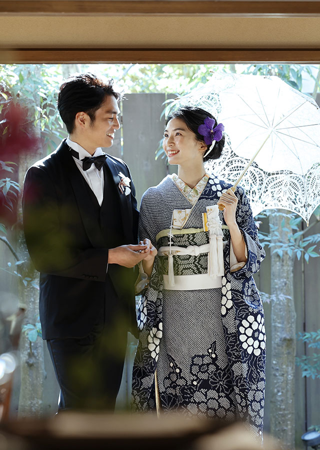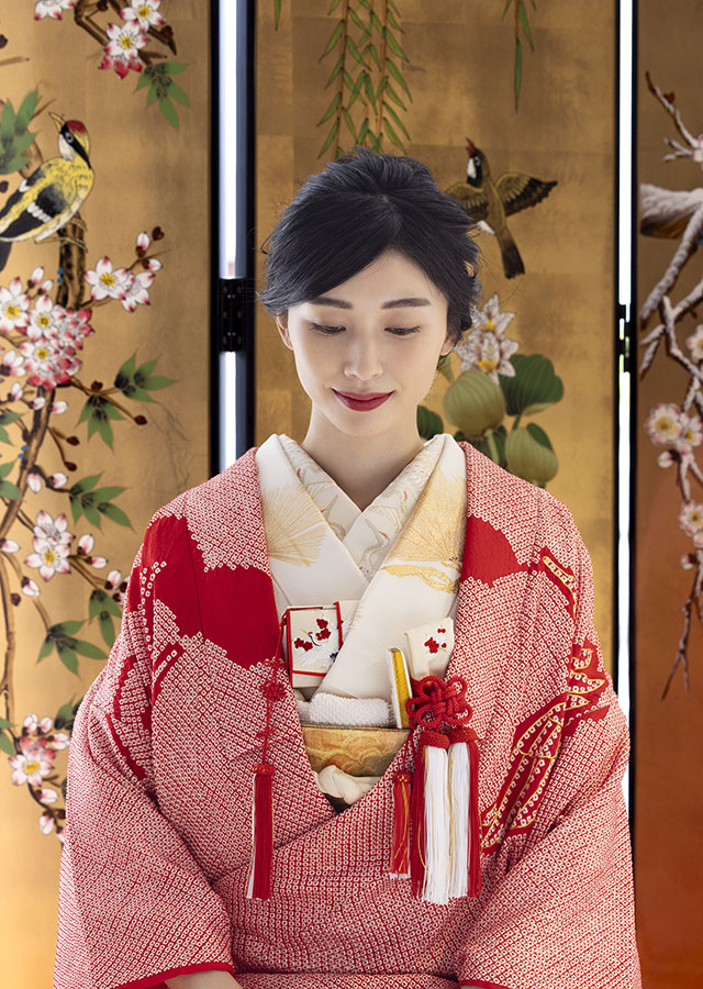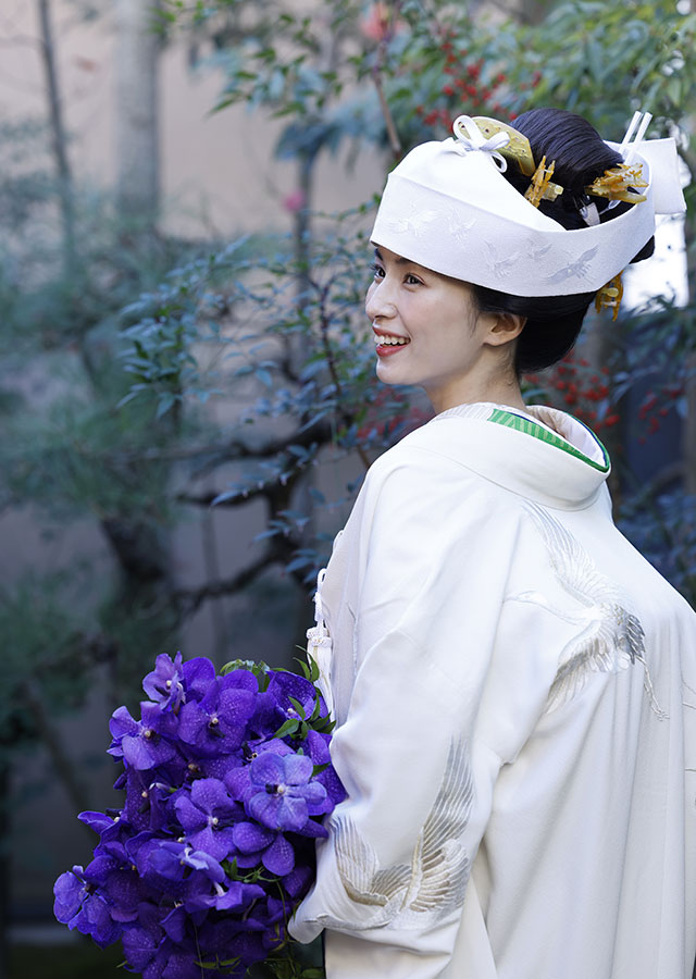 鎌倉 三河屋本店のコーディネートは、調和・洗練・格好良さ・シンプルさのコンセプトのもと、着物だけではなく、ヘアメイクや小物など全体のバランスを整え、花嫁が持つ個性や品格を最大限に引き立てます。