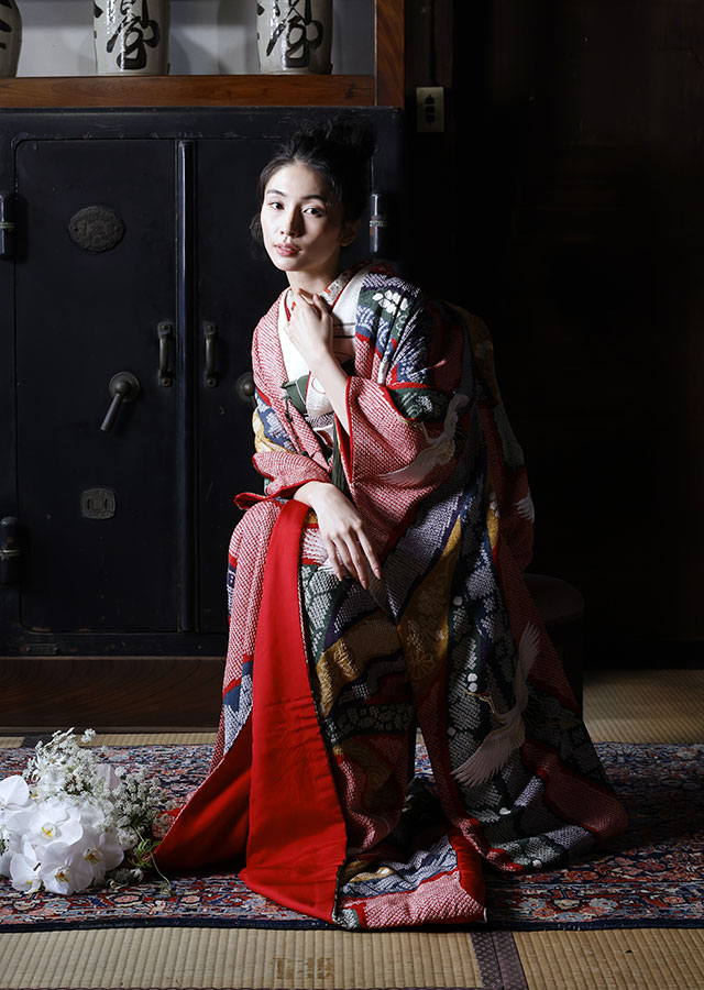 専属の衣装スタッフと日本全国を回り、各地に眠る貴重な着物を探し出し、買い付けしています。今では再現することができない昔ながらの技法、天然素材、繊細な刺繍が施されています。流行の色柄や他にありそうな着物ではなく、時を超えて愛される着物を。