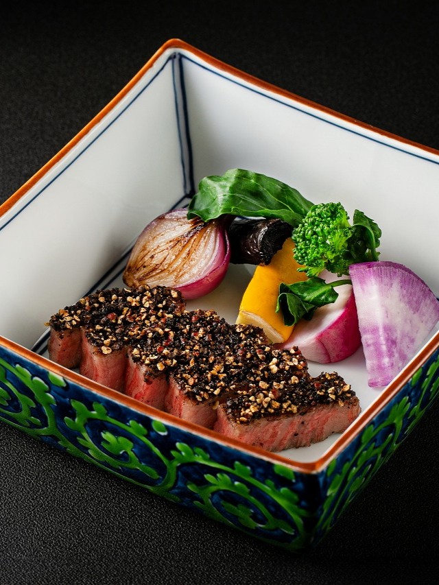 日本料理の繊細な技法を基本としつつ、フレンチなど他ジャンルのエッセンスを取り入れた料理は、幅広い年代の方に喜んでいただける一皿。
