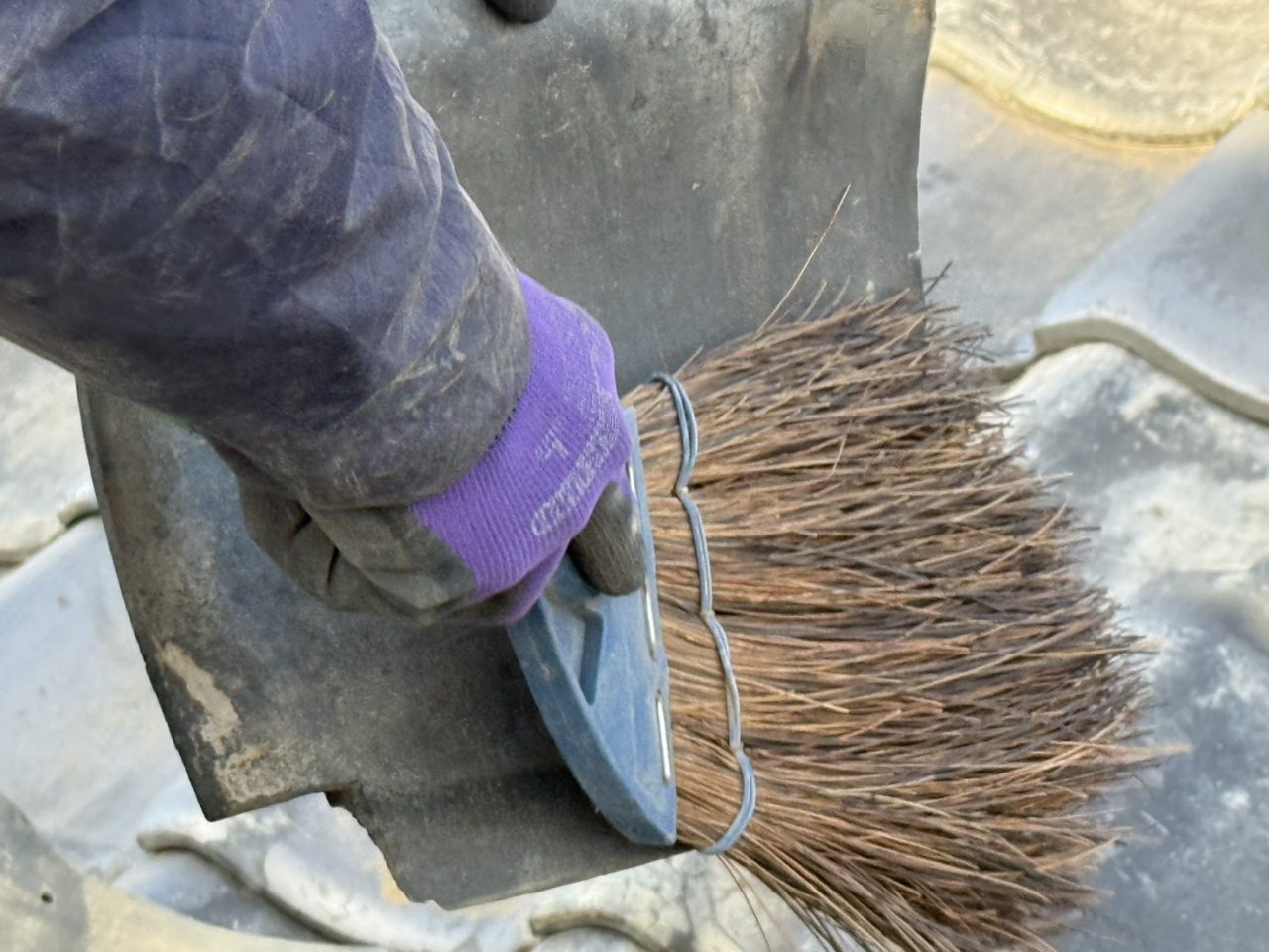 最後に瓦を戻します。瓦はきれいに土などを除去した後、釘やビスで固定できる穴を空け、一枚ずつ固定します。
