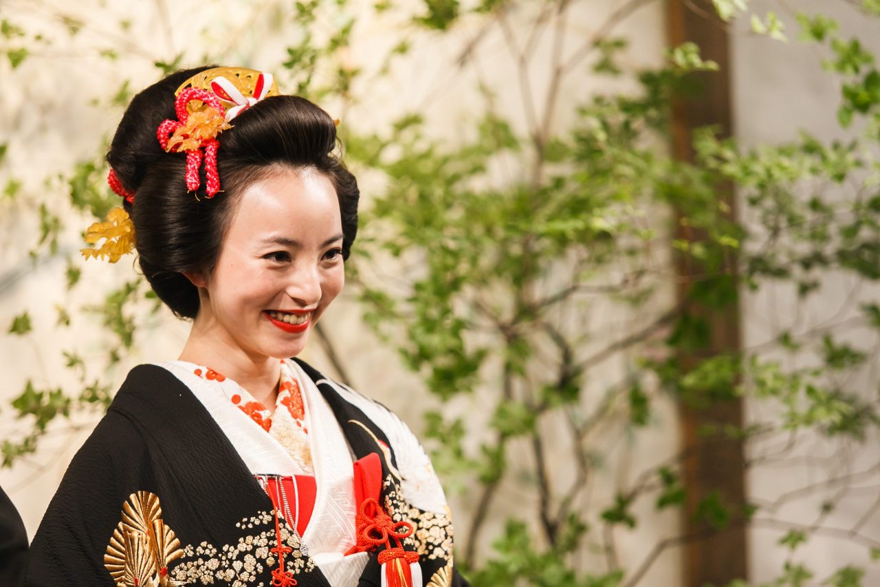 挙式の前に行われる「挨拶の儀」。そのときに和装をお召しになりたい。和装を着るならちゃんと髪型も日本の伝統にのっとりたいと仰るご新婦様が多いです。