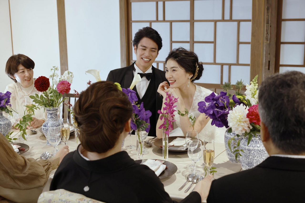また、鎌倉 三河屋本店では、披露宴のことを「祝宴」と呼んでいます。それはおふたりを披露する、ふたりが主役の結婚式(披露宴)ではなく、大切な方々をお招きしておもてなしする、一緒にその時間を楽しむ宴という立ち位置を大切にしているからです。
