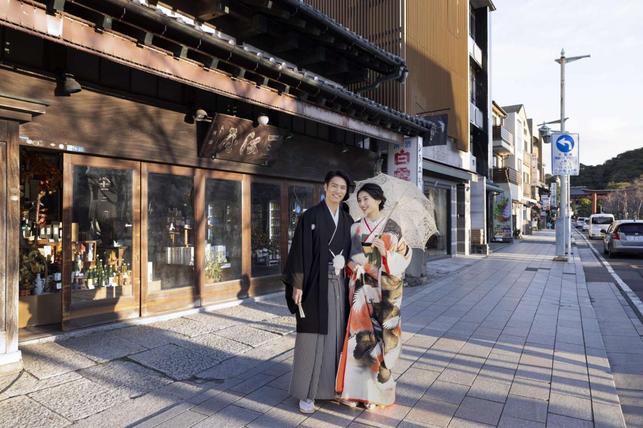 ゲストの皆様は、鎌倉 三河屋本店に集合 → 荷物を預けて徒歩で鶴岡八幡宮へ → 神前式参列 → 徒歩で鎌倉 三河屋本店へ戻り祝宴、というスムーズな動線で過ごしていただけます。