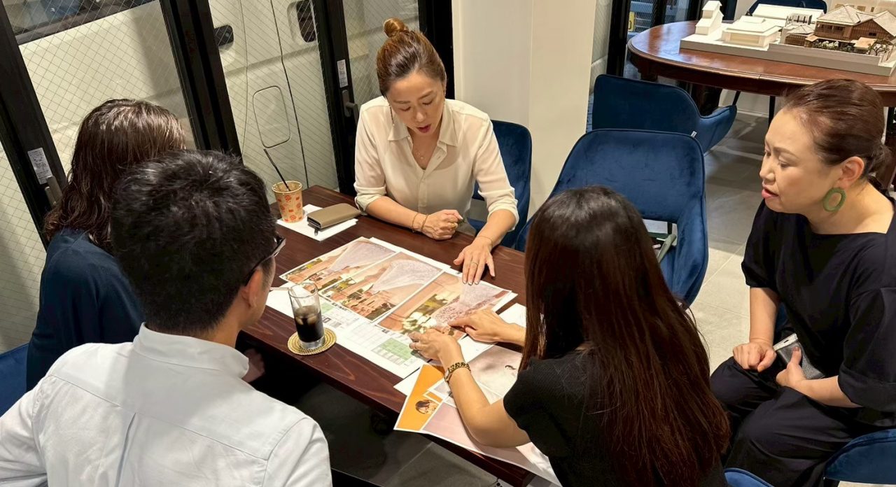 現地のデザイナーさん、製作現場の方々との打ち合わせでは、