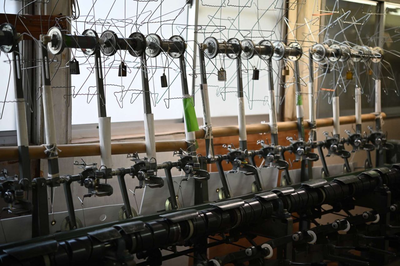 糸の引き揃えの機械。古い機械をメンテナンスしながら使っているそうです。