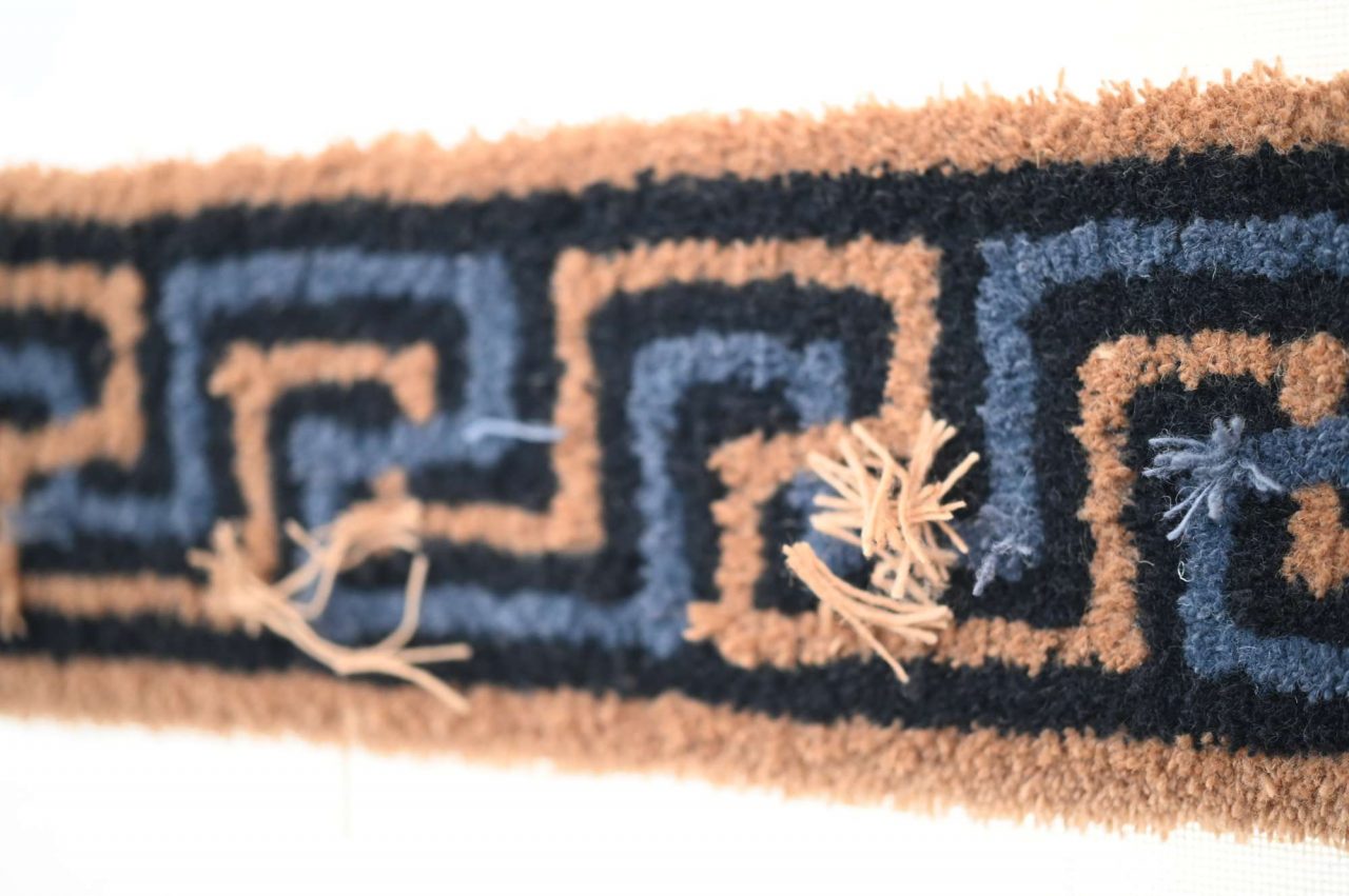 裏側からすべて織り上がった直後は、表面の糸がモコモコの状態です。ここからさらに表面を平滑に美しく整える仕上げの工程を経て、絨毯が完成します 。