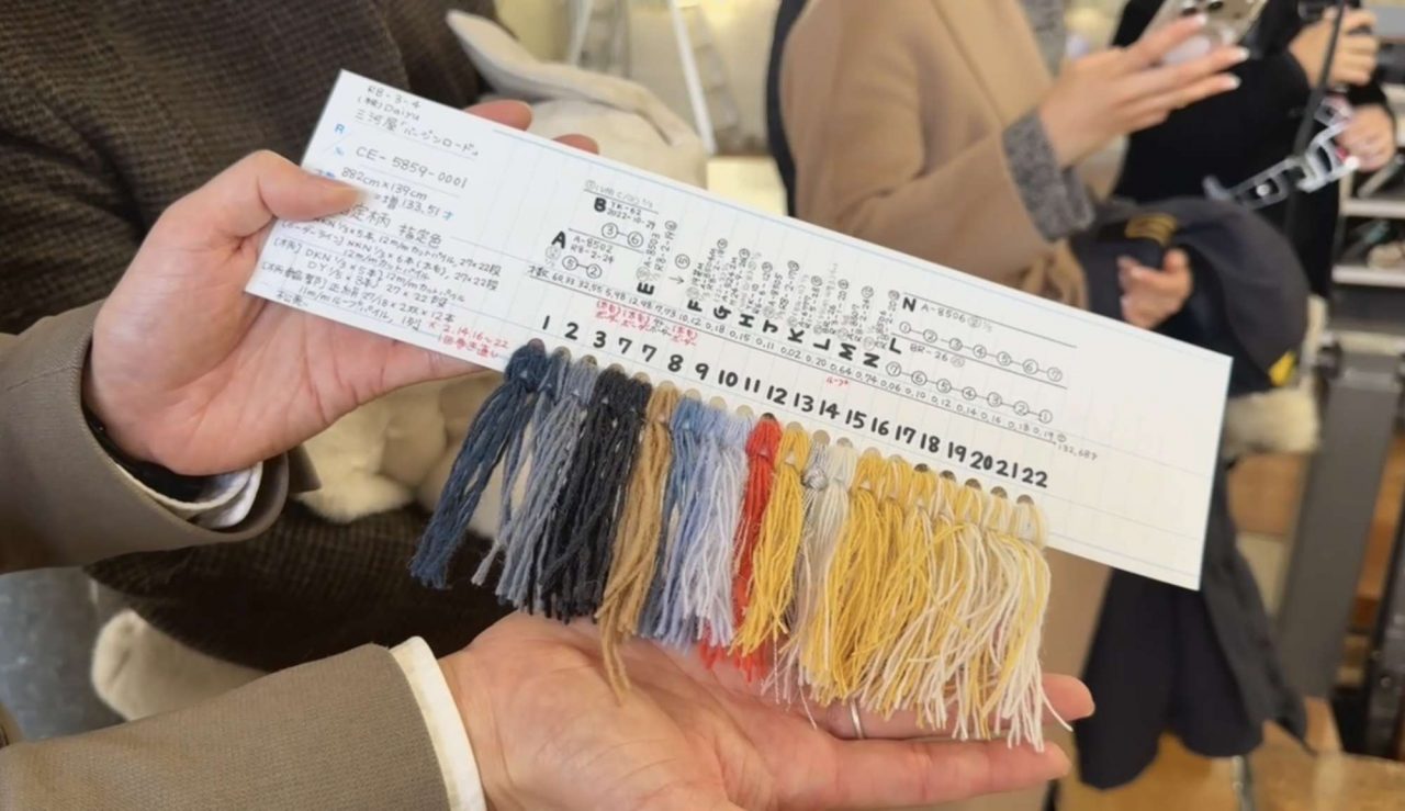 デザイン提案をいただいたものから、糸を選ぶ様子