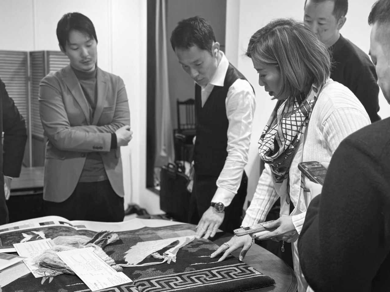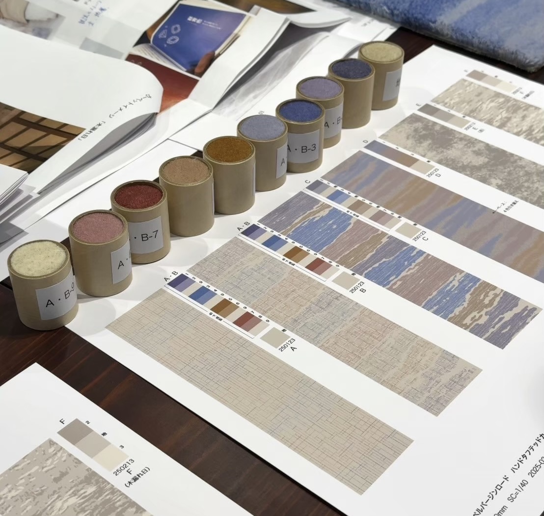 山形緞通さんのラインナップから鎌倉 三河屋本店のイメージに近いものを選ぶ様子